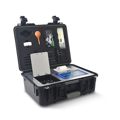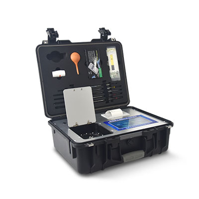 11、高強度PVC工程塑料手提箱設(shè)計,堅固耐用,便于攜帶,供電方式為交直流兩用,可野外流動測試配套成品藥劑。
